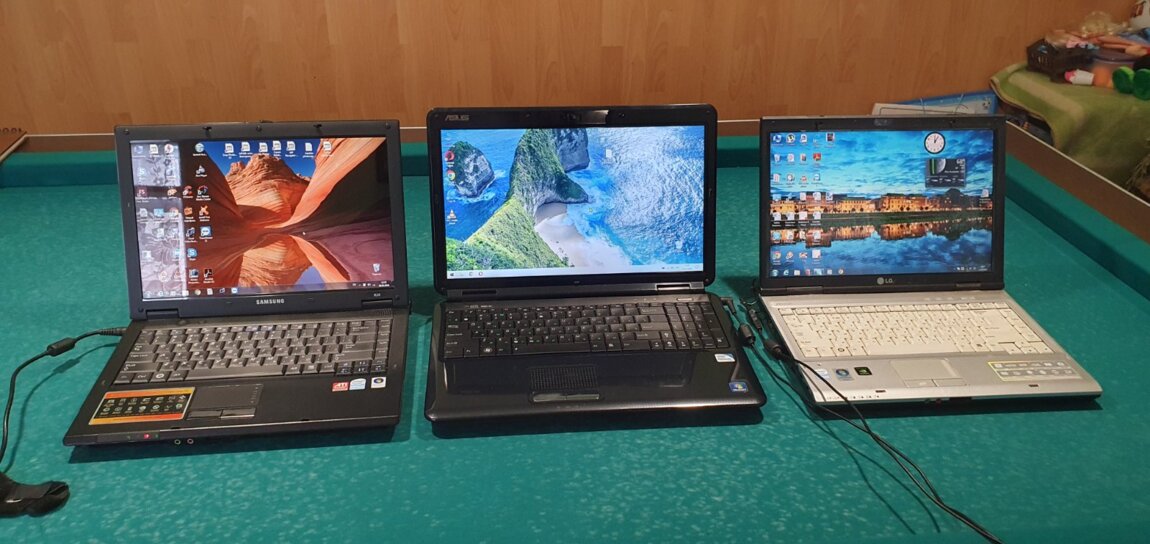 Продам три ноутбука все в рабочем состоянии 700 лей 1шт. ASUS K501J. LG R40. Samsung R20