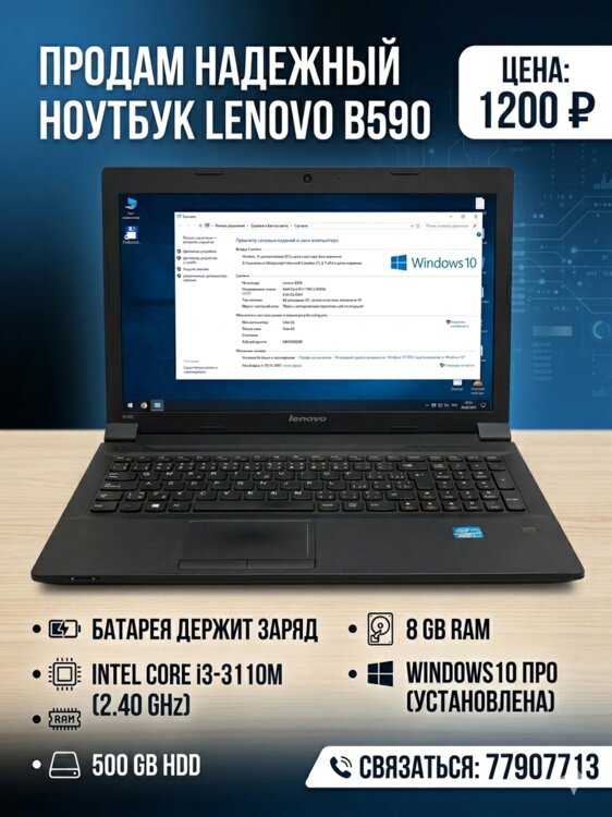 Продам ноутбук lenovo i3-3110M/8Gb ddr3/500Gb hdd/батарея держит 1 час