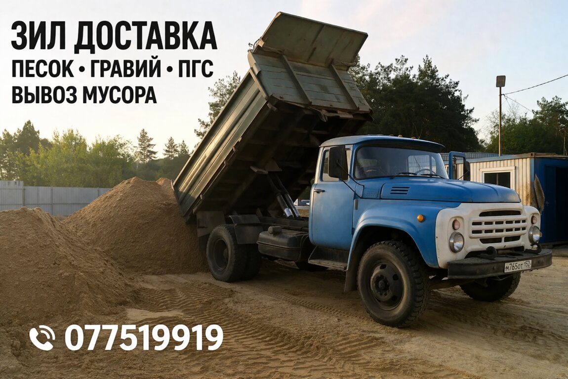 ЗИЛ песок, ЗИЛ доставка, гравий фракции, котелец, ПГС, вывоз мусора