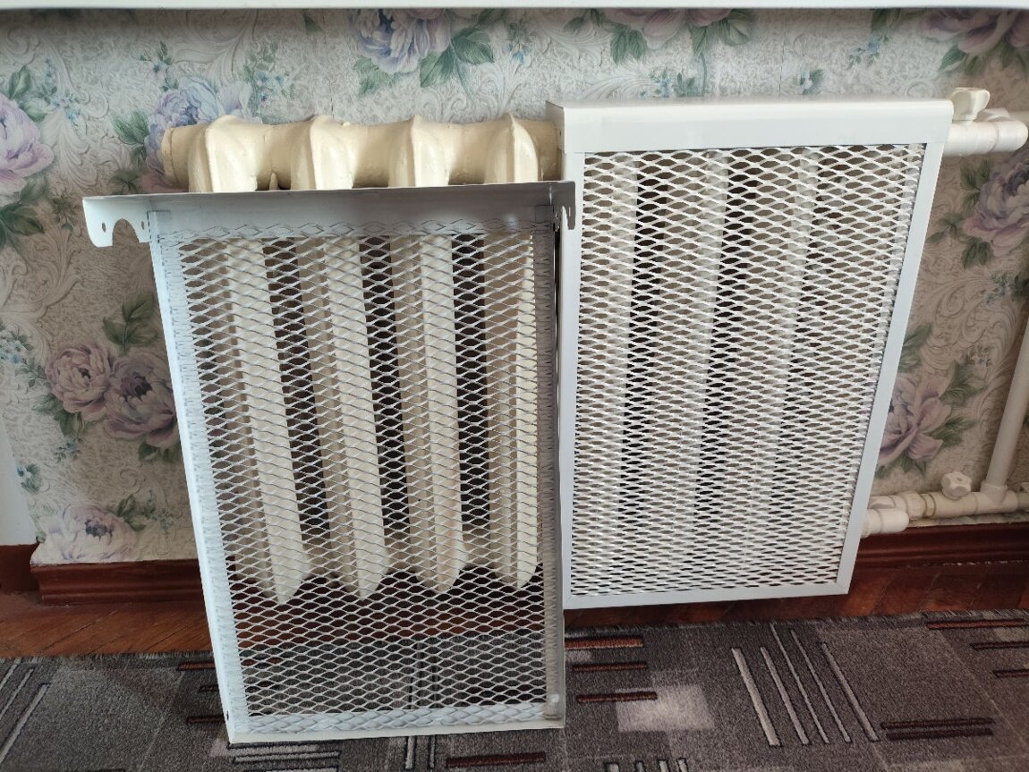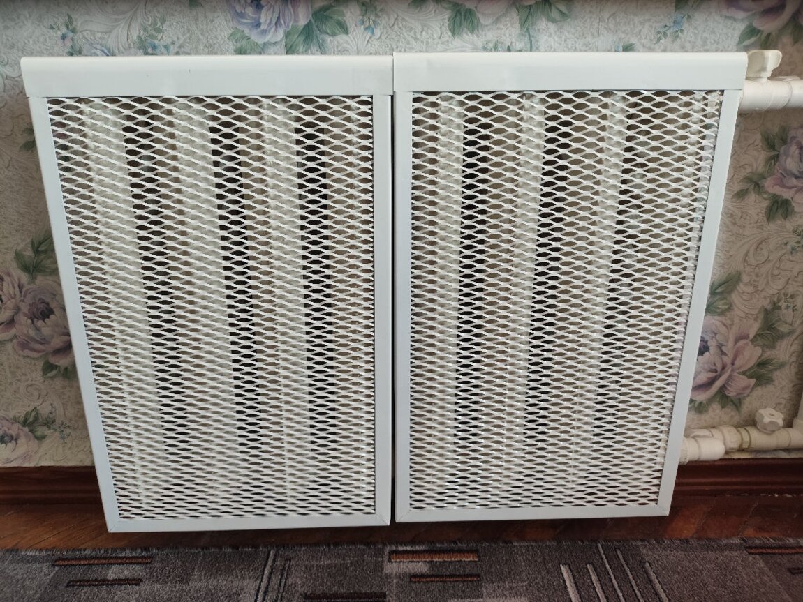 Декоративный металлический экран на радиатор, 4 секции. Высота 61 см. Глубина 14 см. Ширина