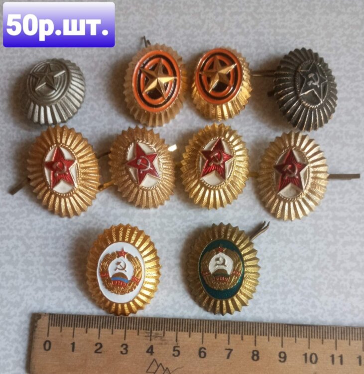 Звёздочки. Кокарды. Настольная медаль: ЛЕНИН,, КРЕМЛЬ. СУВОРОВ.