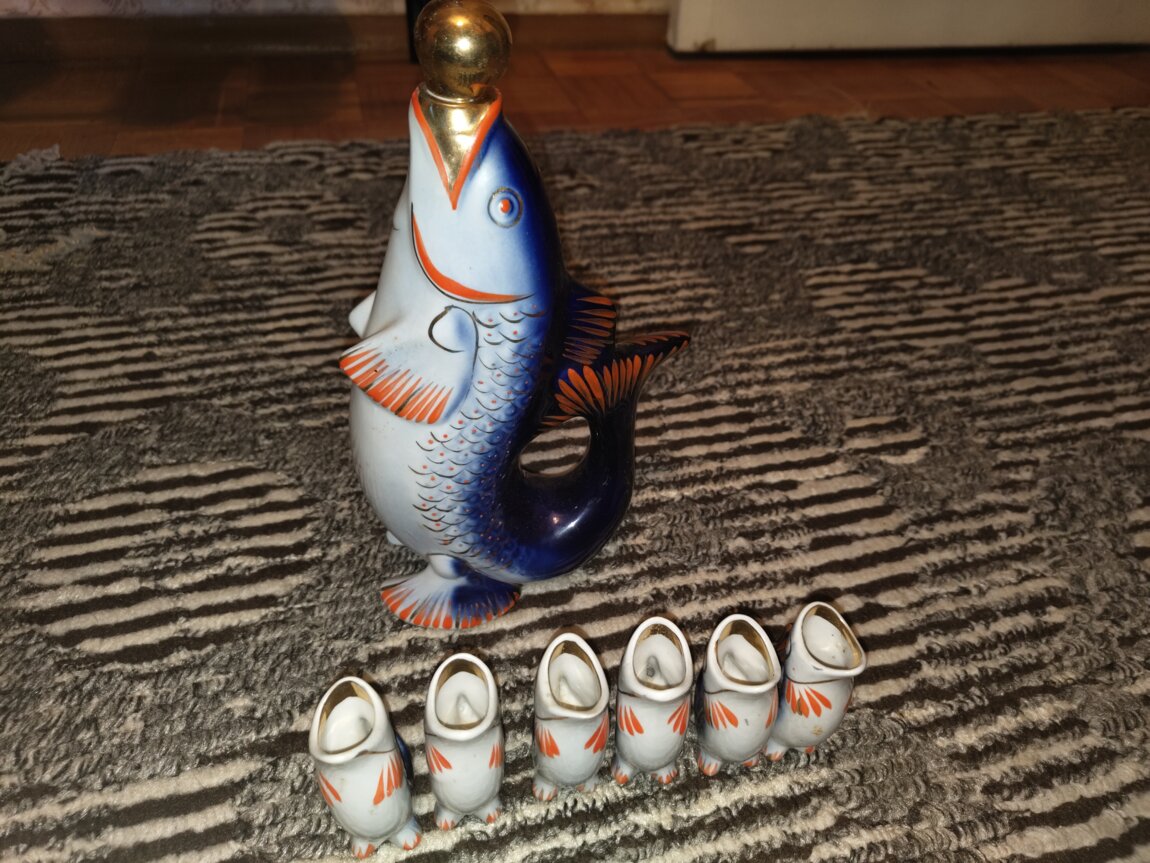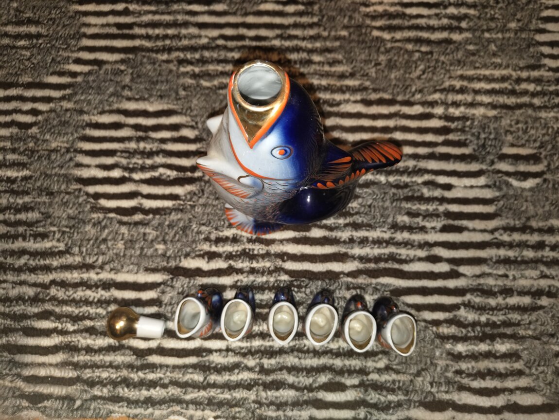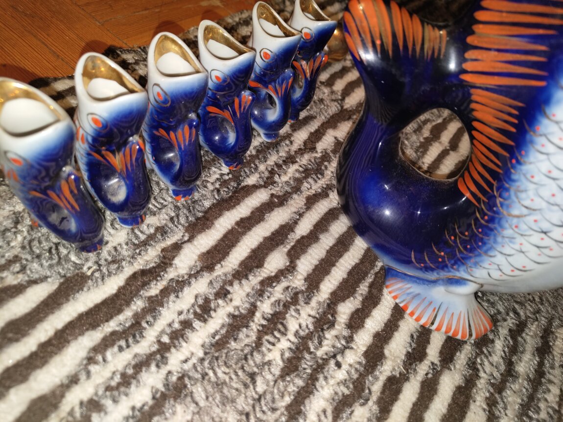 Продам знаменитый винтажный набор для напитков «Рыбки». Фарфор, роспись, золочение.