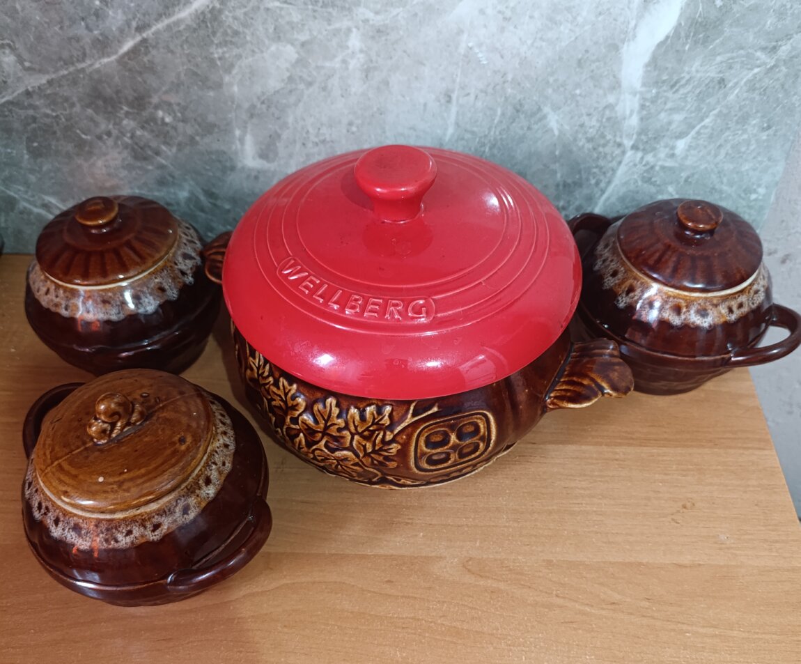большой на 2,8л. крышка из фарфора подобрана, родной нету. (подходит, можно печь) -60р.