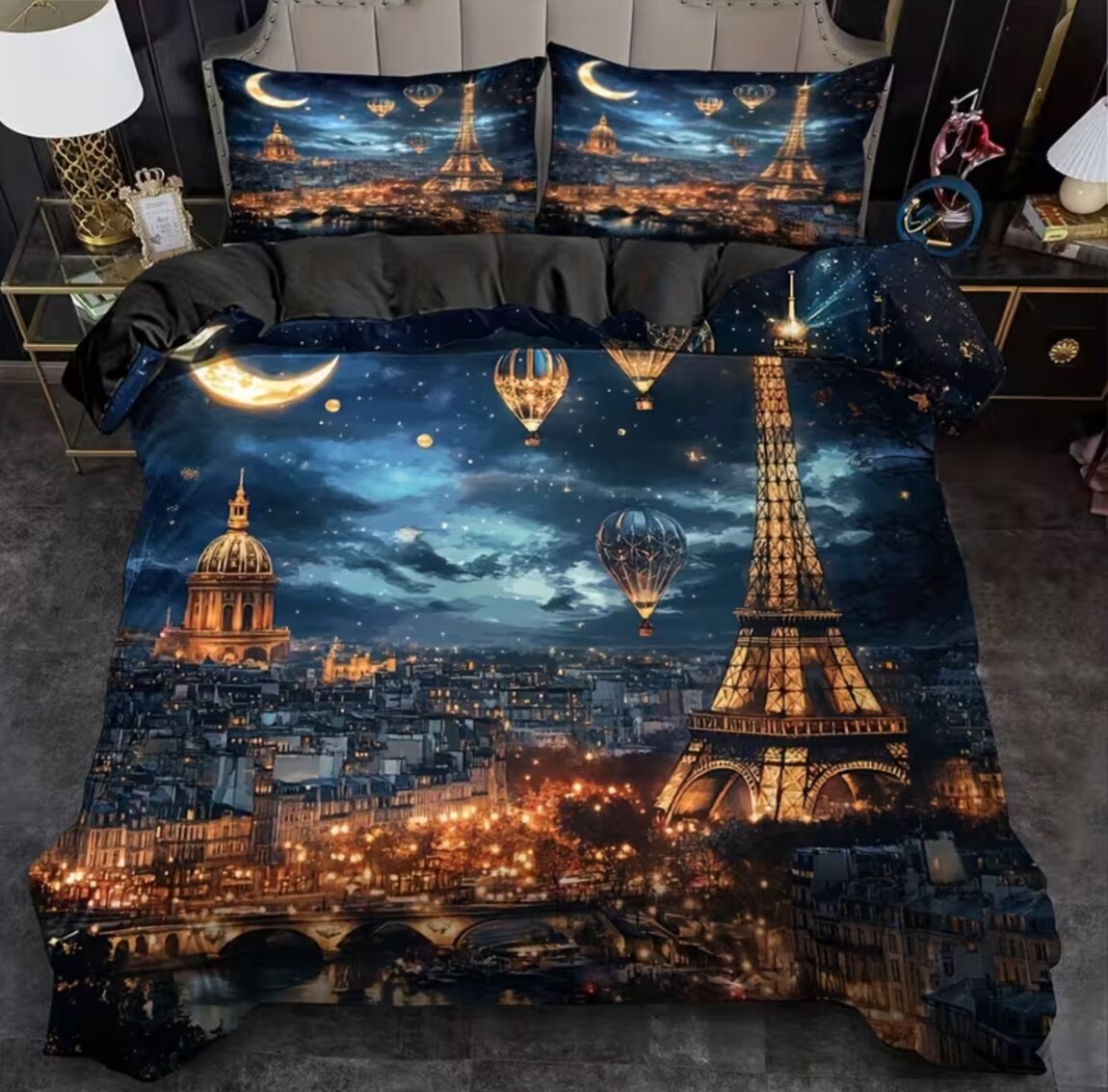 НОВЫЙ! Комплект постельного белья с 3D-принтом "ПАРИЖСКАЯ НОЧЬ С ФЕЙЕРВЕРКАМИ" НА МОЛНИИ со ЗМЕЙКОЙ 1 пододеяльник + 2 наволочки 3D Цифровая печать высокой четкости. Идеальный подарок для всей семьи и друзей. 100% дышащий полиэстер, всесезонный, машинная стирка.
