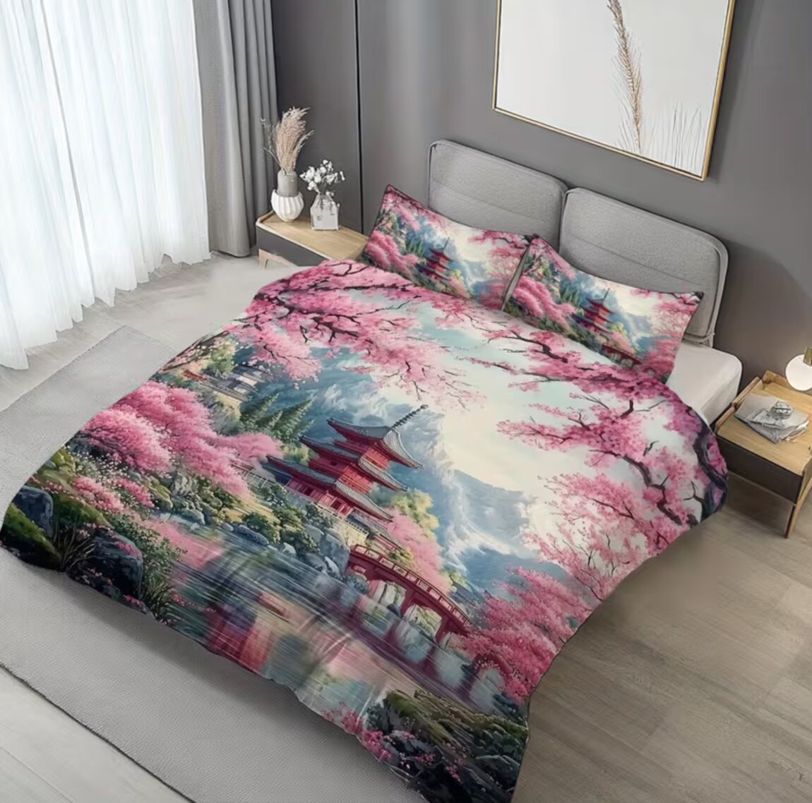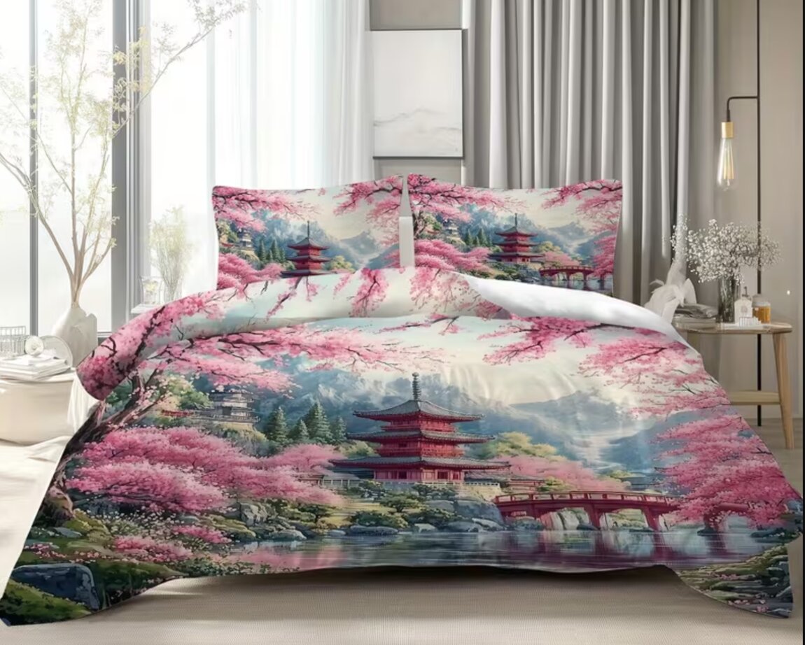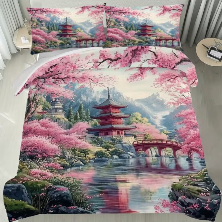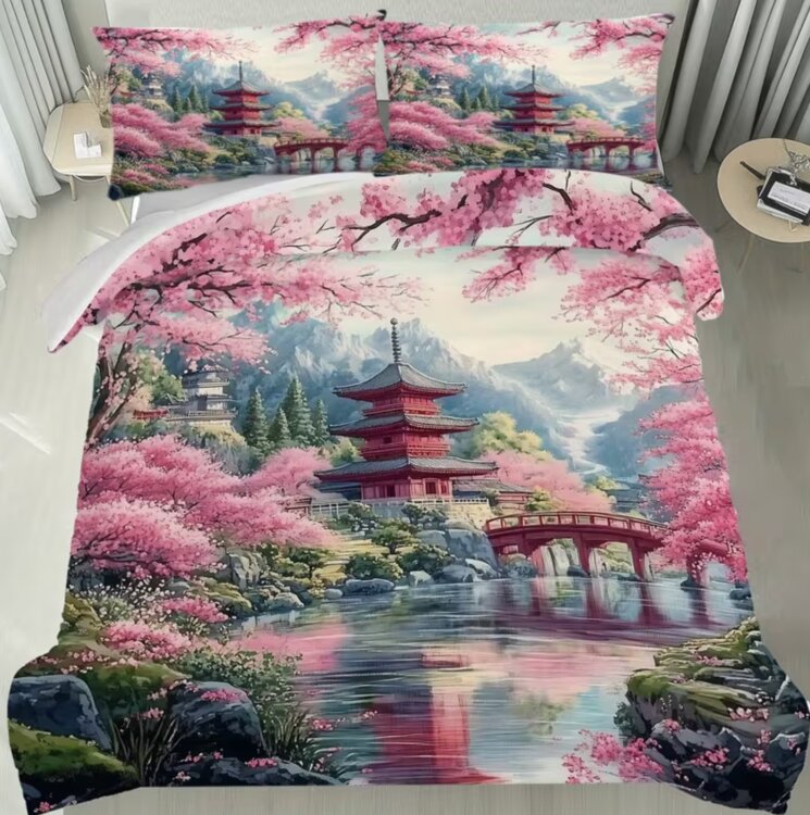 ПОДОДЕЯЛЬНИК на МОЛНИИ 200х200 см + 2 НАВОЛОЧКИ на МОЛНИИ 50х75 см - ВСЕ оснащены скрытой молнией - НОВОЕ постельное белье с ярким 3D-принтом цветущей сакуры на фоне реки на МОЛНИИ со ЗМЕЙКОЙ все предметы на молнии и наволочки и пододеяльник 3D Цифровая печать высокой четкости. Идеальный подарок для всей семьи и друзей. 100% дышащий полиэстер, всесезонный, машинная стирка.
