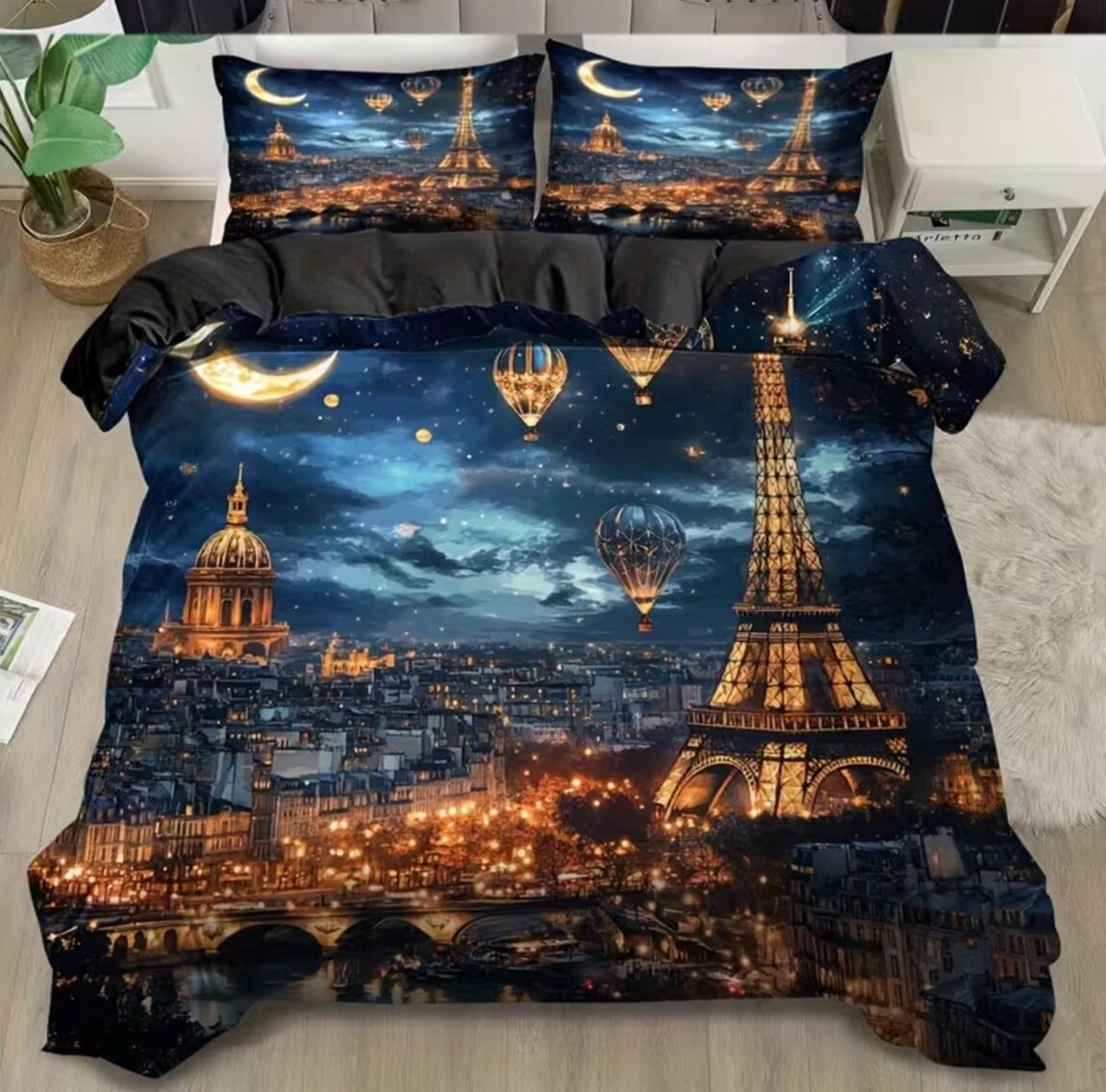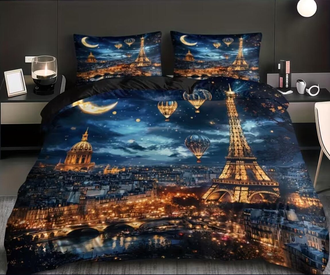 НОВЫЙ! Комплект постельного белья с 3D-принтом "ПАРИЖСКАЯ НОЧЬ С ФЕЙЕРВЕРКАМИ" НА МОЛНИИ со ЗМЕЙКОЙ 1 пододеяльник + 2 наволочки 3D Цифровая печать высокой четкости. Идеальный подарок для всей семьи и друзей. 100% дышащий полиэстер, всесезонный, машинная стирка.