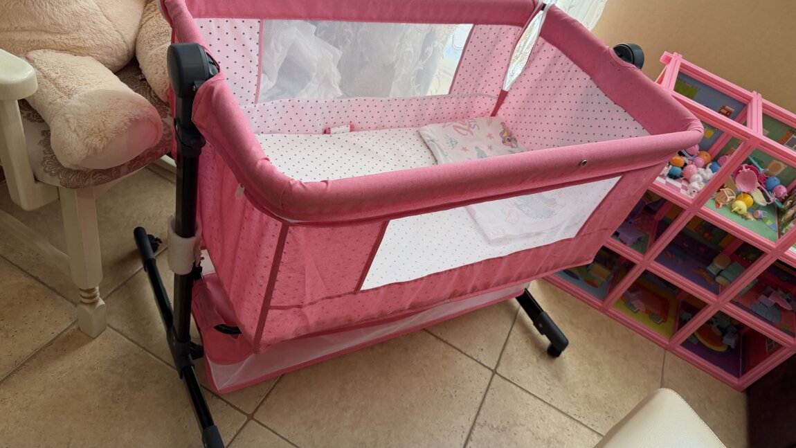 Продам детские люльки, темно серая и розовая. Легкая и удобная. Качается и так же стоп есть без качания, и стопы на колесах. Одна сторона откидывается и можно к кровати приставить, в серой матрасик немного испачкан. И есть корзина внизу для игрушек, козырек есть и там и там. Пишите звоните возможен торг