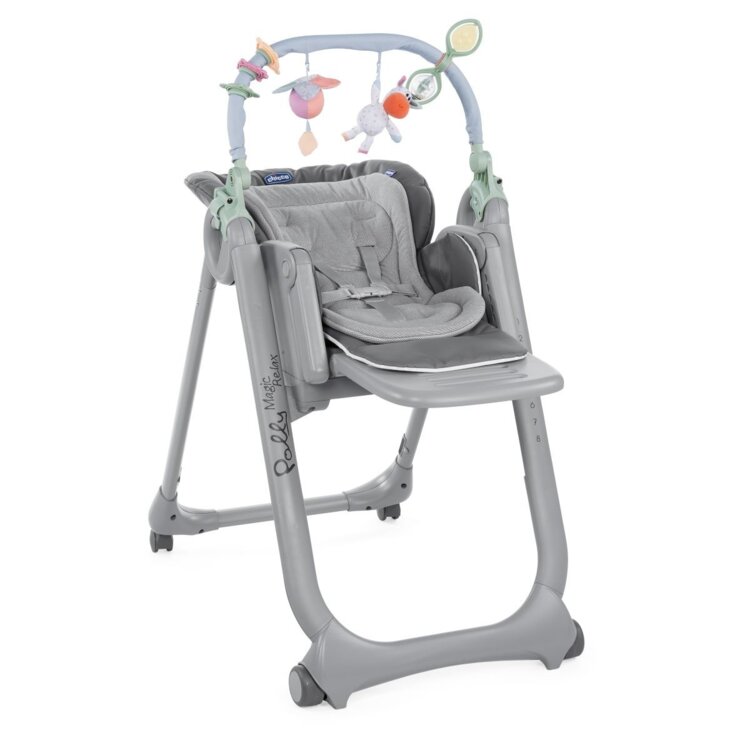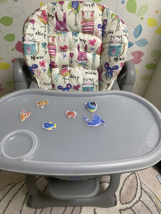 Продаю оригинальный стульчик Chicco Polly Magic Relax в отличном состоянии. Полный комплект как из магазина: рама, съёмный двойной столик, поднос, мягкий вкладыш-reduktor для новорождённых, дуга с игрушками, ремни безопасности, колёсики.