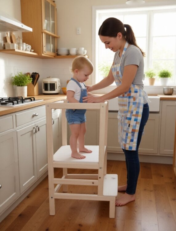 Эта башня становится неотъемлемой частью ежедневных ритуалов. Она помогает ребенку самостоятельно мыть руки, чистить зубы или помогать маме на кухне, дотягиваясь до нужных полок. Высота башни подобрана таким образом, чтобы обеспечить ребенку комфорт и уверенность, делая простые действия доступными и увлекательными. Это маленький шаг к большой независимости, который малыш делает с удовольствием.