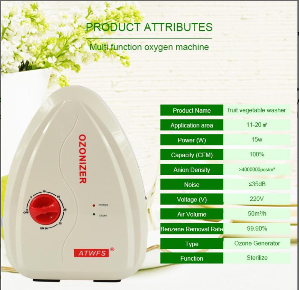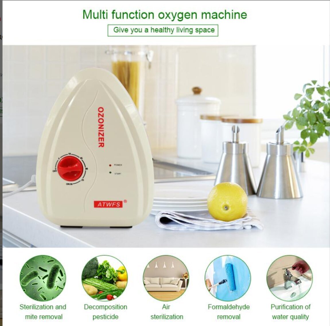 ATWFS Многофункциональный генератор озона 400 мг/ч, озоновая мойка для фруктов и овощей, воздушный стерилизатор