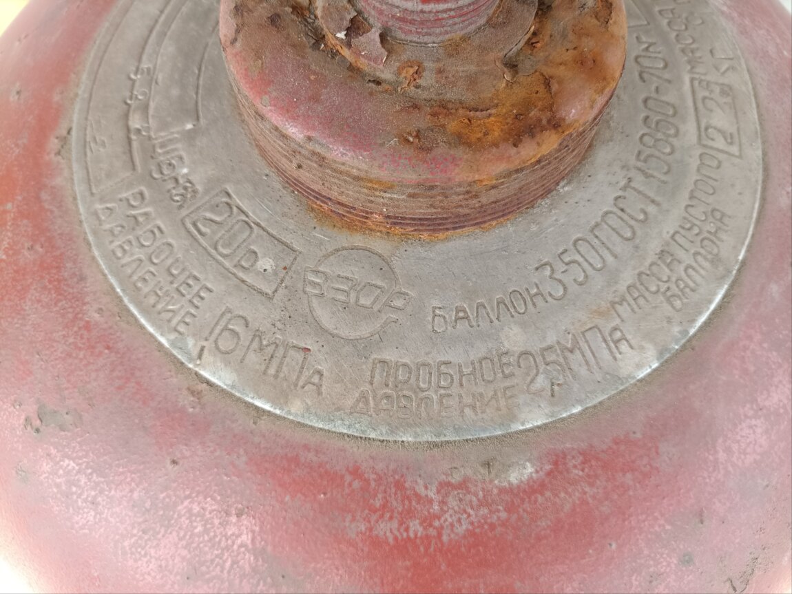 Продам газовый баллон советского качества. ГОСТ 15860-84/15860-70. В то время использовали действительно качественную, толстую сталь, которая служит десятилетиями. Состояние хорошее, хранился бережно, без сквозной коррозии.