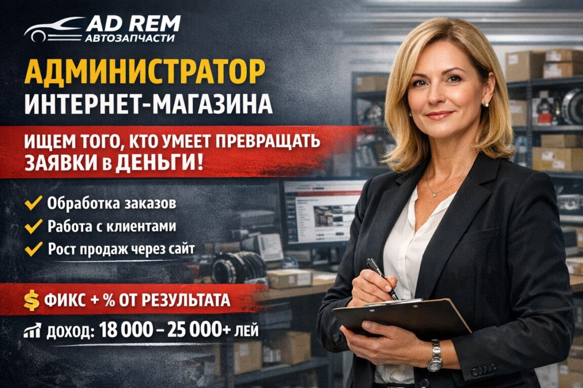 Вакансия: Администратор интернет-магазина автозапчастей AD REM