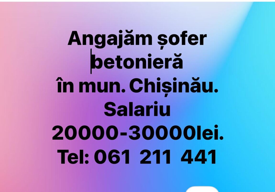 Angajăm șofer betonieră în mun. Chișinău.
