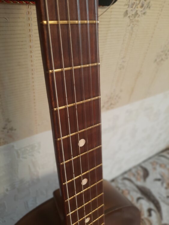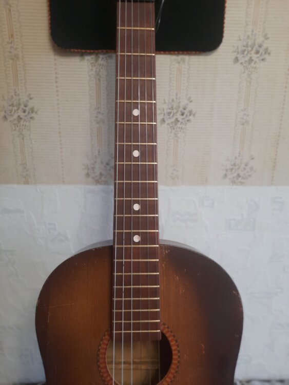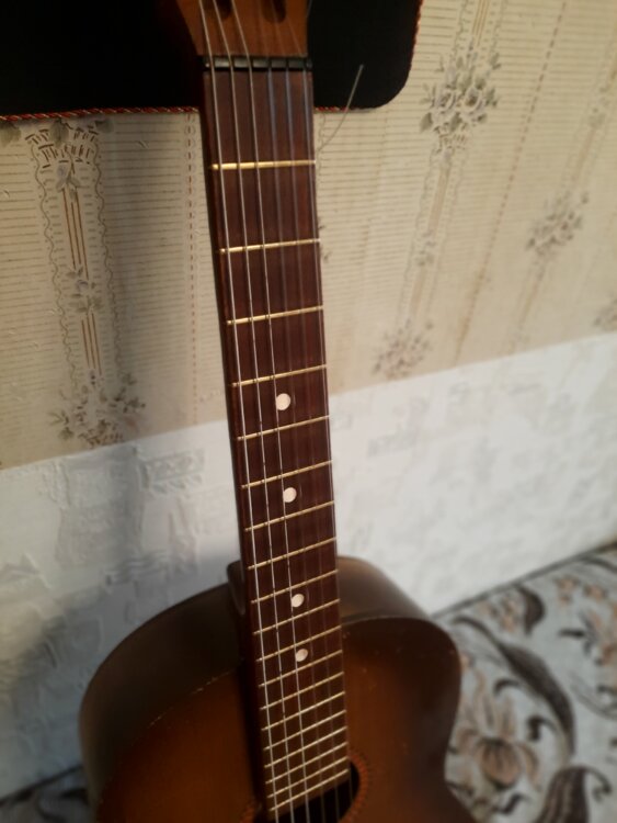 Цельное дерево - дека, нижний порожек туск, верхний пластик, ровный гриф и строй.