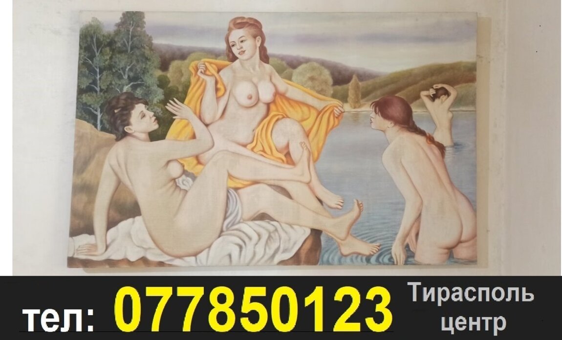 Недорого продам большую картину художественными масляными красками на холсте - Четыре девы у реки. Для ценителей искусства. Размеры - 110 х 70 см. Всего за - 550 руб. Возможен торг или обмен на ваши варианты. По всем вопросам пишите в вайбер, вацап или звоните 077850123 Тирасполь
