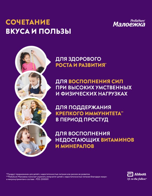ПедиаШур «Шейк» — это вкусный питательный напиток, который дополнит несбалансированную еду питательными веществами, чтобы ребёнок получал всё самое необходимое для здорового роста, развития и укрепления иммунитета. Сбалансированный состав помогает ребёнку не только расти и развиваться, но и поддерживать иммунную защиту, благодаря содержанию макро- и микронутриентов.