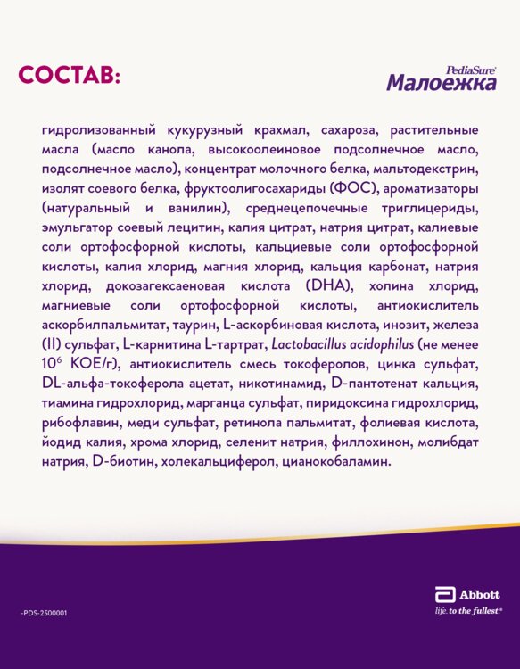- Содержит белки и незаменимые жирные кислоты (АЛК и ЛК) — способствуют нормальному физическому развитию.