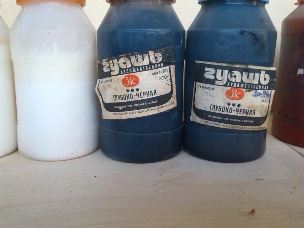 - Гуашь художественная в банках, Белила Серебристо-белая, Красная, Глубоко-чёрная, 300-900гр.