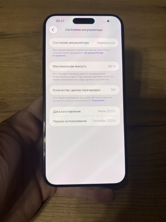 Продам IPhone 15 Pro Max 256 GB в отличном состоянии, есть царапины на стекле, не вскрывался, в ремонте не был, батарея-88%, количество циклов перезарядки-797. Face ID, True tone работают, без блокировок, любые проверки. В комплекте шнур, чехол, цена- 580$ 077973846