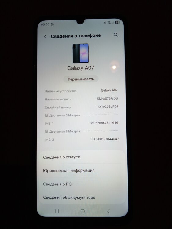 Продаю смартфон Samsung Galaxy A07 в идеальном состоянии с объёмом оперативной памяти 4 ГБ и встроенной памяти 64 ГБ, 8-ядерный процессор MediaTek Helio G99, аккумулятор 5000 мАч, поддержка быстрой зарядки, операционная система Android 16.
