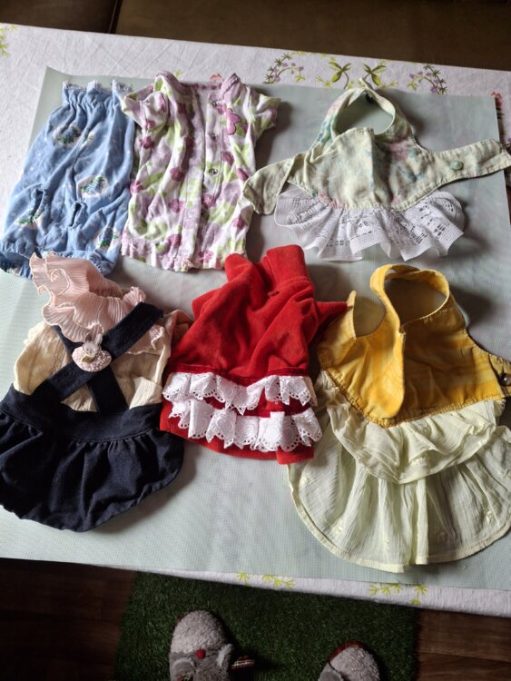 Продам пижамки, сарафаны по 20 руб, платьица, шерстяная кофта по 55 руб, оранжевый комбез 80 руб и джинсовый 100 руб.