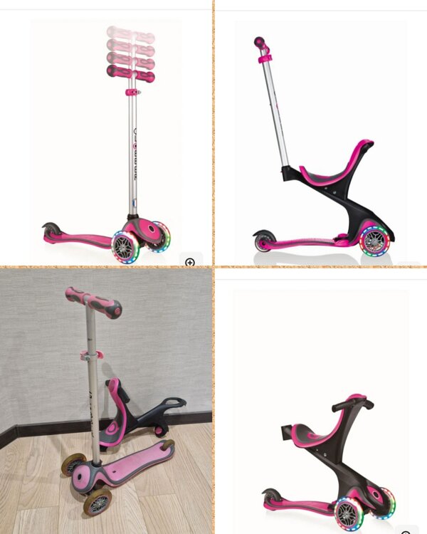 -Самокат Globber Evo Comfort Lights 5 в 1 колеса с подсветкой до 20/50 кг 1+ Розовый (Франция)1000руб