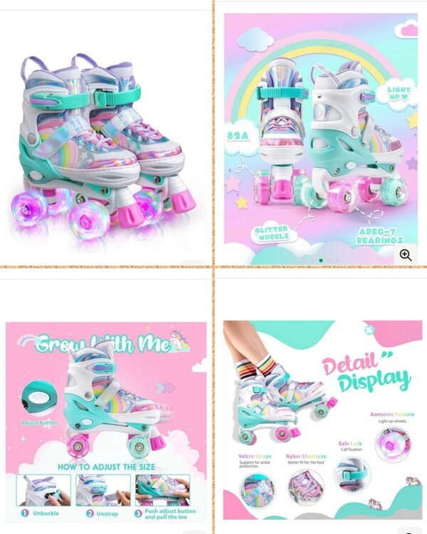 -Роликовые коньки Sulifeel Rainbow Unicorn, регулируемые, со специальными светодиодными колесами размер S (28-31 EU) в очень хорошем состоянии. Примерный возраст 4-7 лет. Все колеса с разноцветными радужными огнями, 8 светящихся колес.