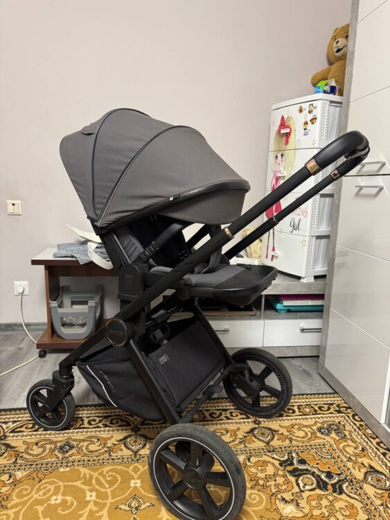 Коляска легкая, обладает отличной амортизацией, маневреная, легка в управление.