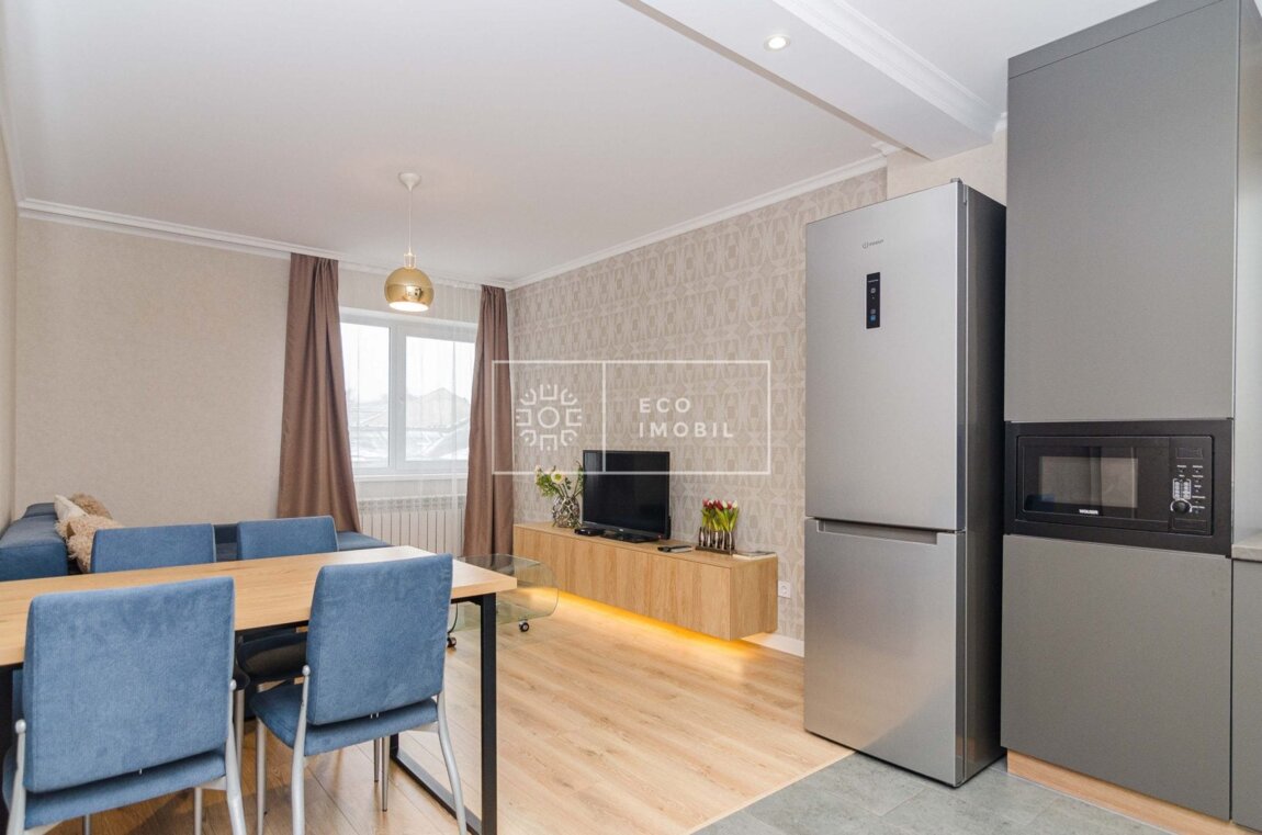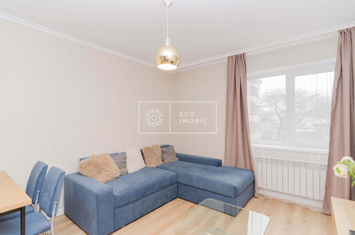 Vă propunem spre chirie apartament cu 2 odăi și living, bloc nou, amplasat în sect. Centru, str. Vlaicu Pârcălab. Imobilul, cu o suprafață de 80 m.p., este poziționat la etajul 3 din 6. Caracteristici: design individual, dispune de reparație calitativă, obiecte sanitare instalate, dotat cu mobilă și tehnică de uz casnic, încălzire autonomă. Compartimentare: 2 dormitoare, living, bucătărie, bloc sanitar. Blocul locativ dispune de pază și supraveghere video 24/24, teren de joacă, zonă de agrement. În imediată apropiere se găsesc numeroase puncte sociale și comerciale, supermarket, farmacie, restaurante. Acces facil la transport public în fiecare direcție a orașului Предлагаем в аренду квартиру с двумя спальнями и гостиной в новом доме, расположенном в секторе Центр, ул. Влайку Пыркэлаб. Квартира площадью 80 кв. м находится на 3 этаже из 6. Характеристики: индивидуальный дизайн, качественный ремонт, установлена сантехника, полностью меблирована и оснащена бытовой техникой, автономное отопление. Планировка: 2 спальни, гостиная, кухня, санузел. Жилой дом оснащён круглосуточной охраной и видеонаблюдением, детской площадкой, зоной отдыха. В непосредственной близости расположены многочисленные социальные и коммерческие объекты: супермаркет, аптека, рестораны. Удобный доступ к общественному транспорту в любом направлении города.