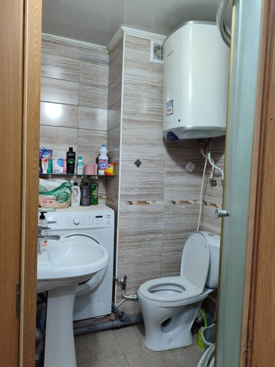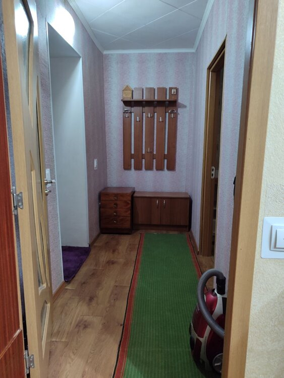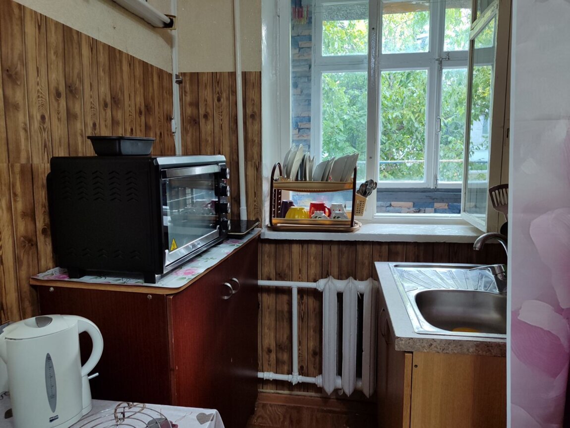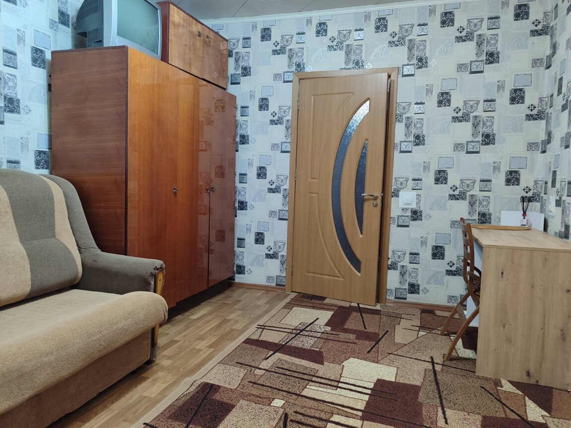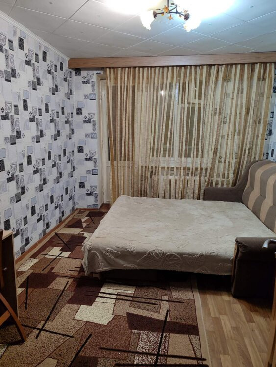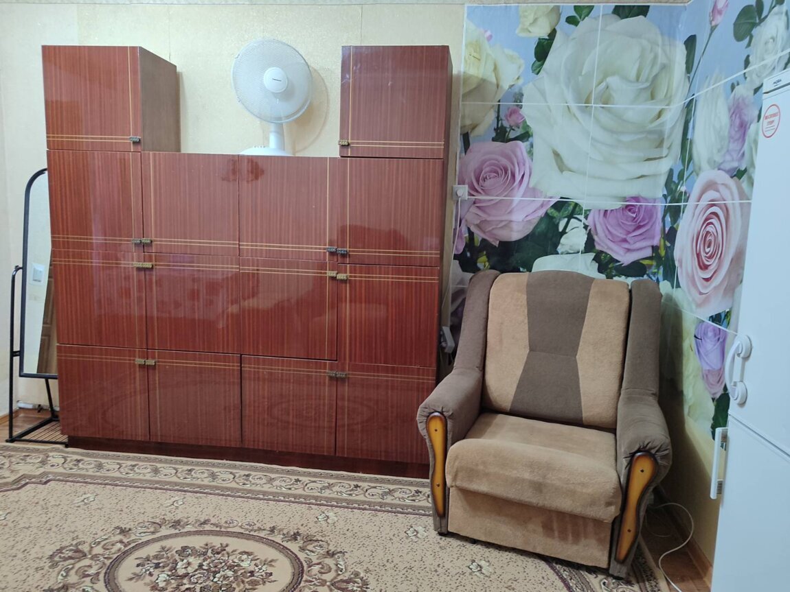 Сдаю 2-комнатную. Мини-кухня и санузел совмещены с одной из комнат. Прихожая, длинный балкон на 2 комнаты. Этаж 2 из 5. В комнатах большой раскладной диван, 2 раскладных кресла, шкафы, табуретки, письменный стол. На полу большие ковры. Есть большая электродуховка, сенсорная электроплита, электрочайник, двухкамерный холодильник, стиральная машина, пылесос, вентилятор. Отопление централизованное. Вода нагревается от бойлера.