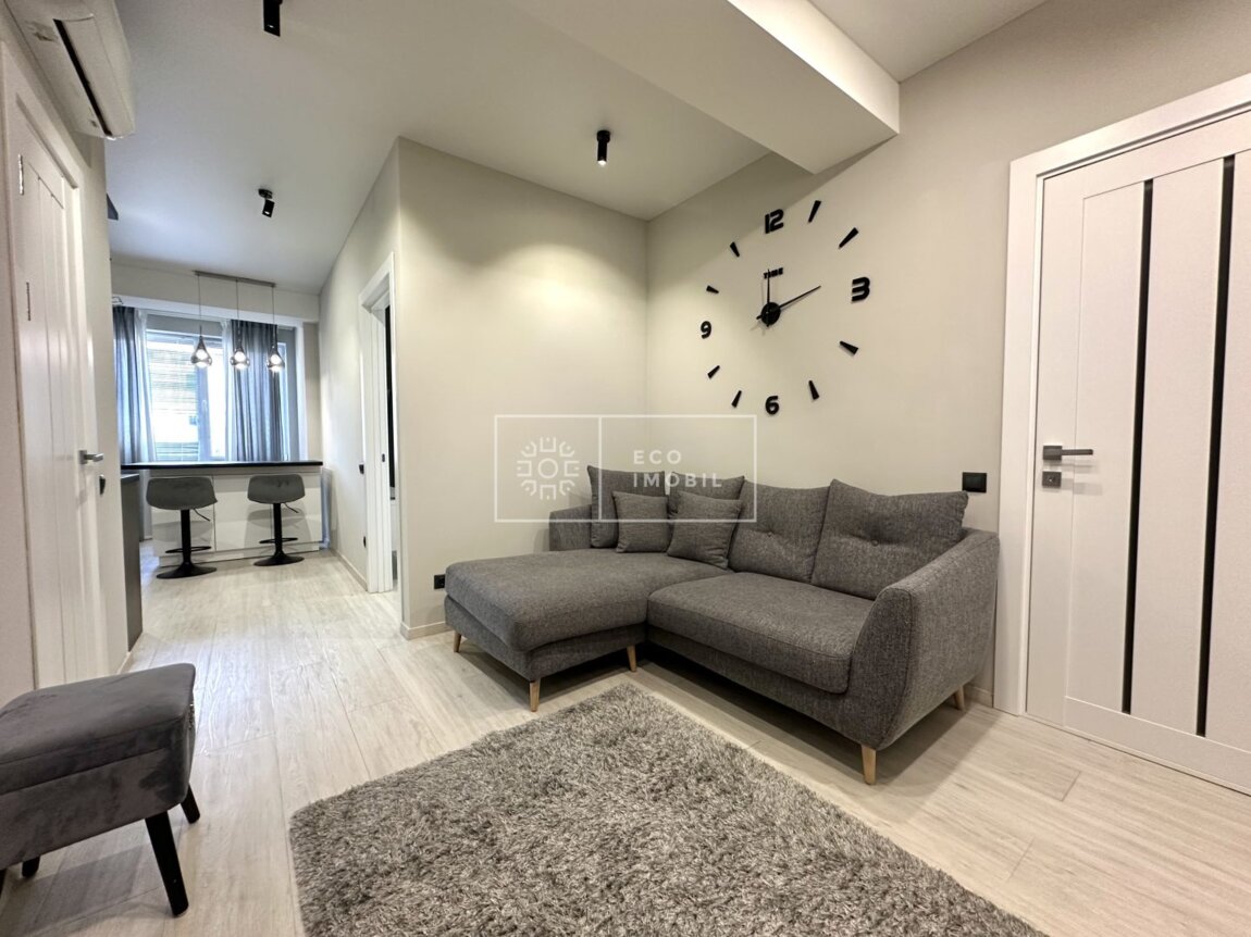 Vă propunem spre chirie apartament cu o odaie și living, bloc nou, amplasat în sect. Botanica, str. Trandafirilor, cu o suprafață de 50 m.p, în imediata apropiere de parcul Valea Trandafirilor. Caracteristici: design individual, dispune de reparație calitativă si nouă, obiecte sanitare instalate, dotat cu mobilă și tehnică de uz casnic, încălzire autonomă, geamuri panoramice, masina de spalat vesela, condiționer, curte de tip închis cu teren de joaca pentru copii. Compartimentare: 1 dormitor, living, bucătărie, bloc sanitar, garderobă. Blocul locativ dispune de pază și supraveghere video 24/24. În imediată apropiere se găsesc numeroase puncte sociale și comerciale, supermarket, farmacie, bancă, grădiniță, sală de fitness, parc etc. Acces facil la transport public în orice direcție a orașului. Мы предлагаем в аренду квартиру с одной спальней и гостиной, в новом доме, расположенном в районе Ботаника, на улице Трандафирилор, площадью 50 м², в непосредственной близости от парка «Долина Роз». Характеристики: индивидуальный дизайн, качественный и новый ремонт, установленные сантехнические приборы, меблированная и оснащённая бытовой техникой, автономное отопление, панорамные окна, посудомоечная машина, кондиционер, закрытый двор с детской площадкой. Планировка: 1 спальня, гостиная, кухня, санузел, гардероб. Жилой дом охраняется и оснащён видеонаблюдением 24/7. В непосредственной близости находятся многочисленные социальные и торговые объекты: супермаркет, аптека, банк, детский ...