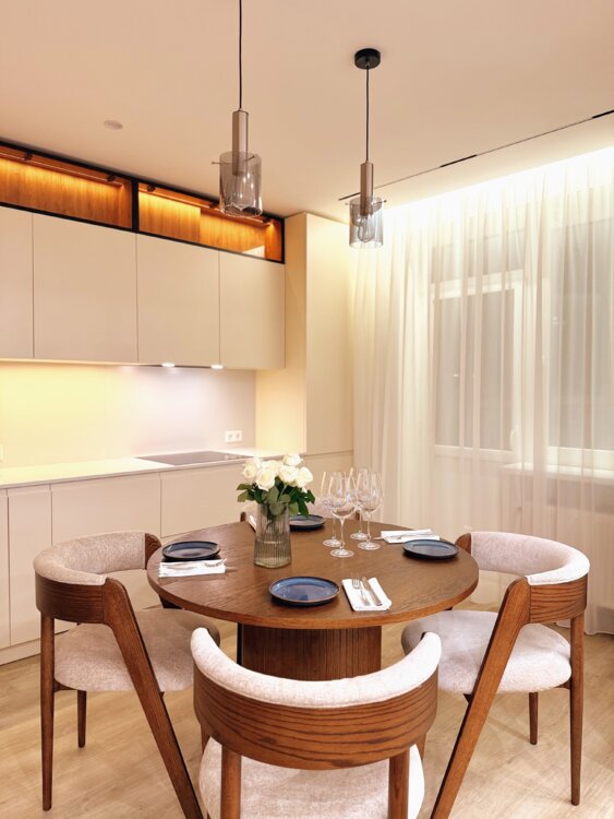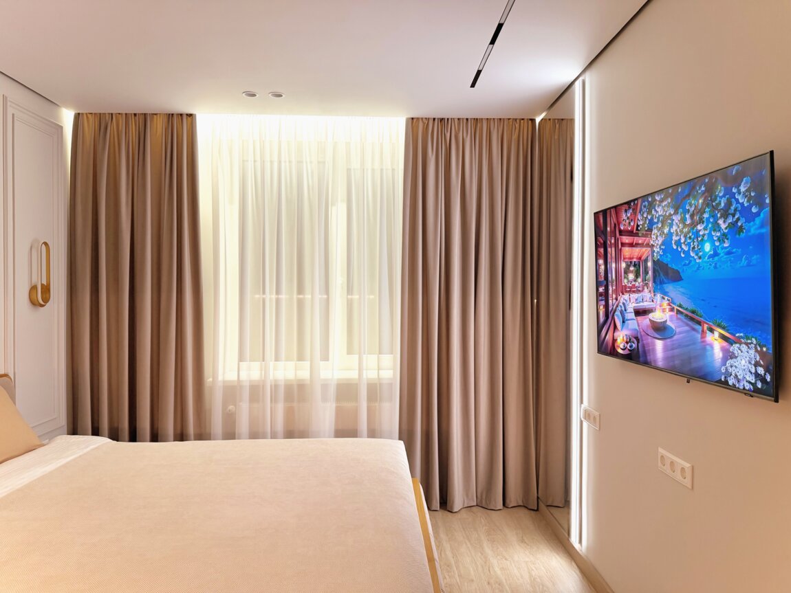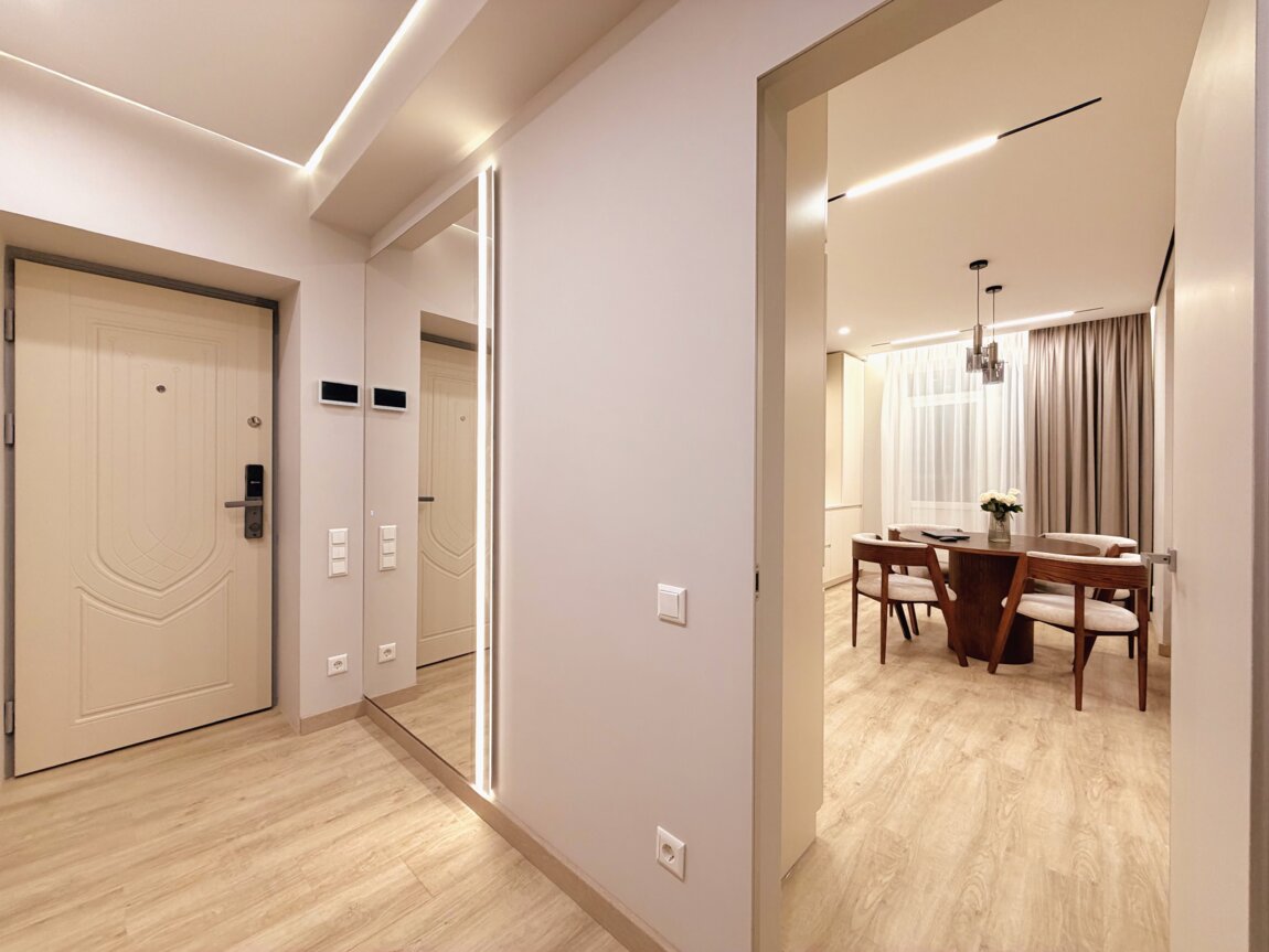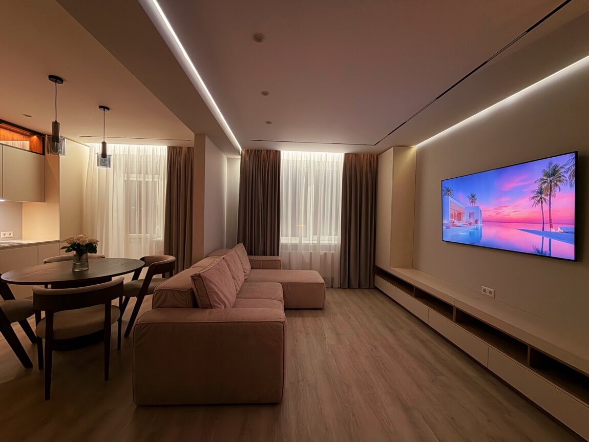 Стильная дизайнерская квартира премиум-класса, новая, просторная и комфортная. Интерьер выполнен в элегантном минималистичном стиле.