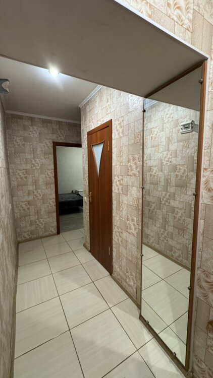 — просторная прихожая с большим зеркалом во весь рост
