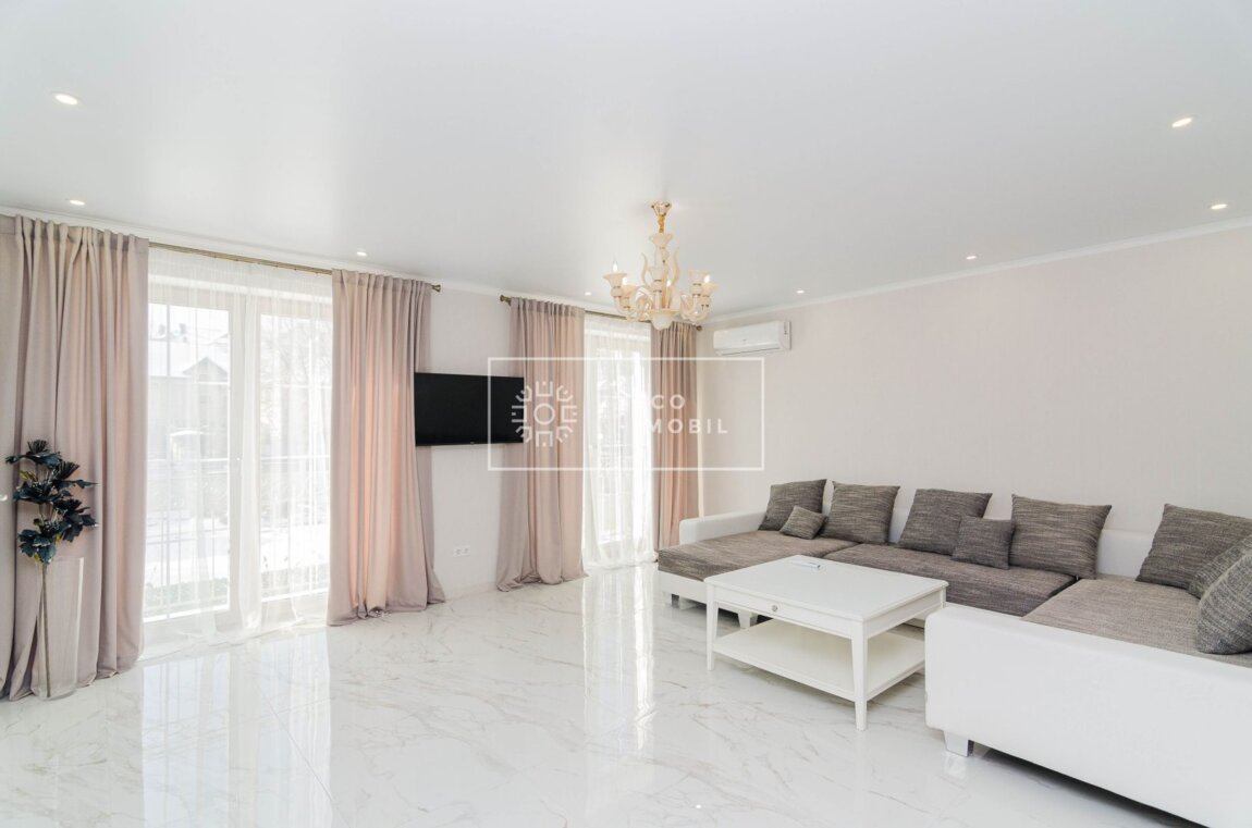 Se oferă spre chirie casă în sectorul Centru cu amplasare reușită în zonă rezidențială liniștită. Se află în imediata apropiere de parcul Valea Morilor. Casă este amplasată pe un teren de 3 ari cu suprafața de 270 m.p., în 3 nivele. Compartimentare: 1 Nivel: antreu, garderobă, bucătărie, living spațios, bloc sanitar. 2 Nivel: 2 dormitoare, fiecare cu baie proprie, garderobă. 3 Nivel: dormitor spațios, bloc sanitar, cabinet sau garderobaă. Casă dispune de reparație calitativă, este dotată cu absolut tot mobilierul și tehnica pentru uz casnic. Dispune de locuri de parcare în curte pentru 2 automobile, unul de tip deschis și garaj. Gradină proprie și spațiu de odihnă. Предлагается в аренду дом в секторе Центр, с удачным расположением в тихом жилом районе. Находится в непосредственной близости от парка «Валя Морилор». Дом расположен на участке 3 сотки, общей площадью 270 кв. м, в 3 уровня. Планировка: 1 уровень: прихожая, гардеробная, кухня, просторная гостиная, санузел. 2 уровень: 2 спальни, каждая с собственной ванной комнатой, гардеробная. 3 уровень: просторная спальня, санузел, кабинет или гардеробная. Дом с качественным ремонтом, полностью укомплектован мебелью и бытовой техникой. Имеются парковочные места во дворе на 2 автомобиля: одно открытое и гараж. Собственный сад и зона отдыха.
