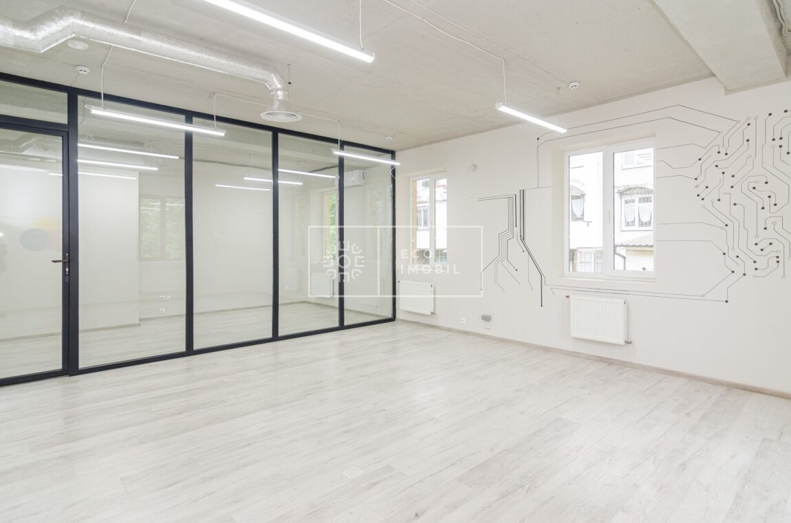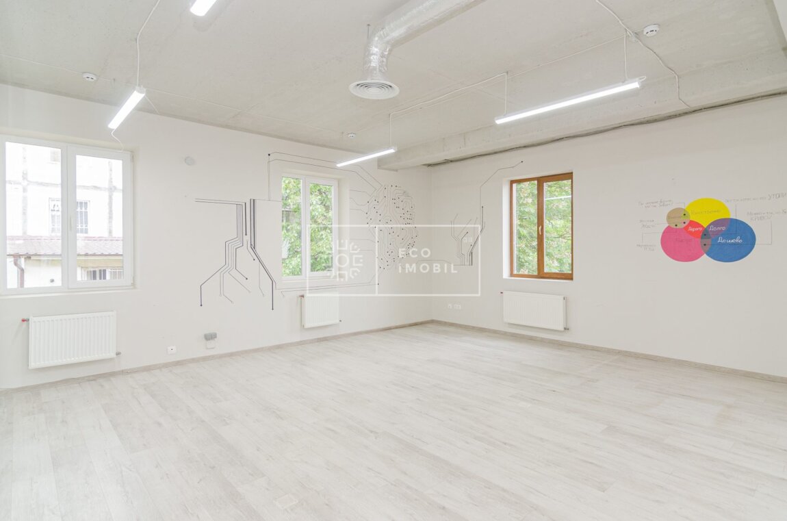 Se oferă spre închiriere un spațiu de birouri pe bd. Mircea cel Bătrân. Spațiul este situat la etajul doi al unei clădiri de birouri. Biroul este dotat cu sisteme de ventilație și recuperare a aerului. Încălzire autonomă. Spațiu pentru bucătărie și sală de sport. Ideal pentru reprezentanță, IT, call center. Сдается в аренду офисное помещение на бул. Мирча чел Бэтрын. Помещение расположено на втором этаже офисного здания. Офис оборудован системами вентиляции и рекуперации воздуха. Автономное отопление. Место для кухни и спортзала. Идеально подойдёт под представительство, ИТ, колл центр.