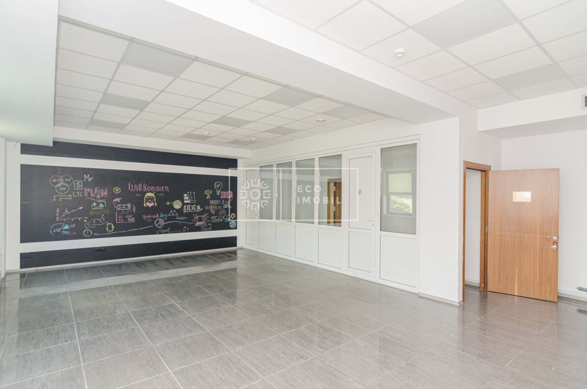 Se oferă spre chirie oficiu în Business Centru Eximbank, sectorul Centru, bd. Ștefan cel Mare. Oficiul este amplasat la etajul trei și are o suprafață totală de 200 m.p. Caracteristici: Ultracentral, clasa Premium Sistem de încălzire prin pompe electrice și răcire prin ventilare Compartimentat în cinci birouri, dintre care două cu intrări separate din coridor Grup sanitar pentru femei și bărbați Coridor comun Costuri suplimentare: Servicii comunale și mentenanță (întreținerea blocului): 2,5 euro/m.p. Energia electrică se achită conform contorului Prețul nu include TVA. Potrivit pentru: birou, companie IT, call center etc. Сдаётся в аренду офис в бизнес-центре Eximbank, сектор Центр, бульвар Штефан чел Маре. Офис расположен на третьем этаже, общая площадь — 200 кв.м. Характеристики: Ультрацентральное расположение, здание класса Premium Система отопления с использованием электрических тепловых насосов и охлаждение через вентиляцию Планировка включает пять отдельных кабинетов, два из которых имеют отдельный вход из коридора Санузлы для женщин и мужчин Общий коридор Дополнительные расходы: Коммунальные услуги и обслуживание здания — 2,5 евро/кв.м Электроэнергия оплачивается по счётчику Цена не включает НДС Подходит для: офиса, IT-компании, call-центра и др.