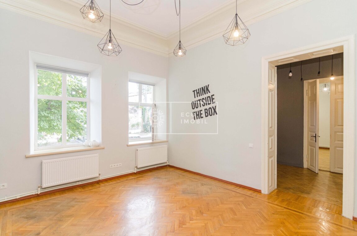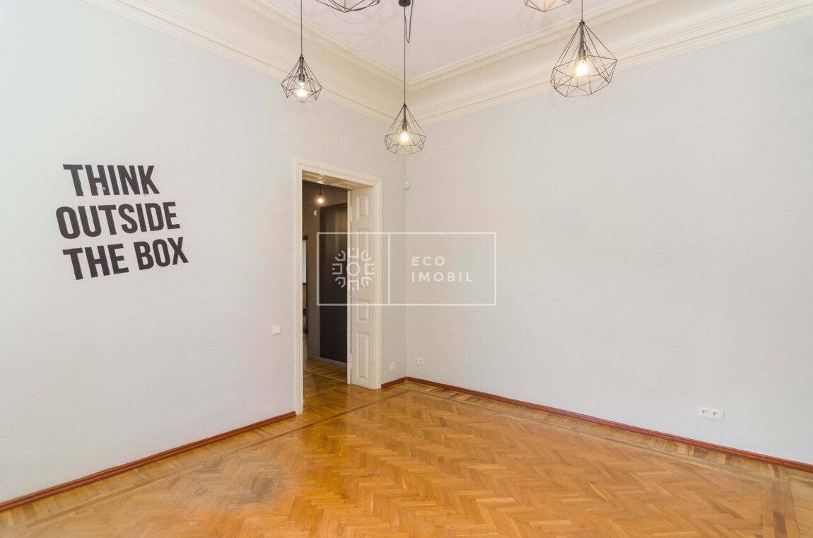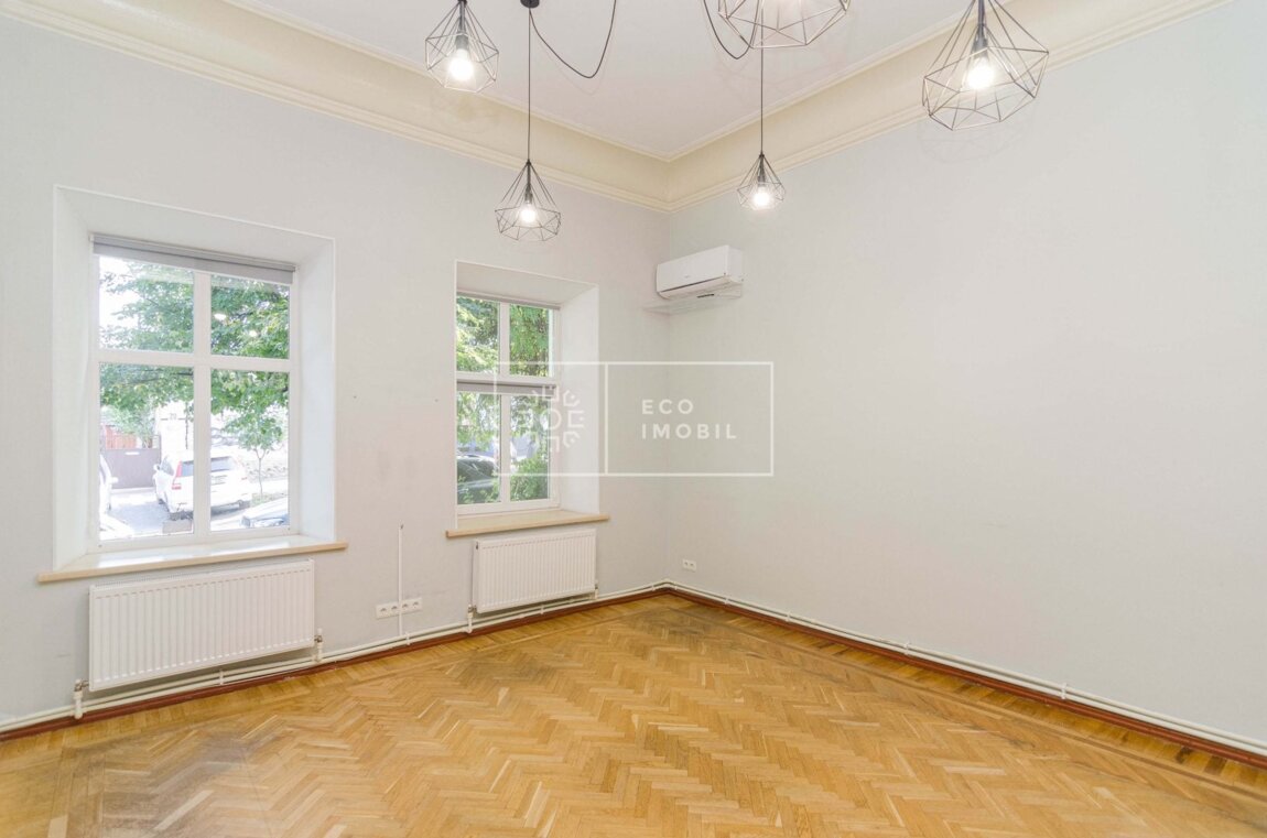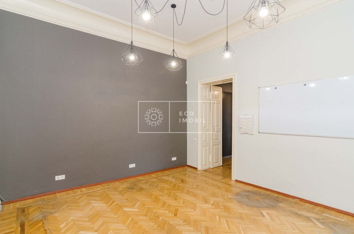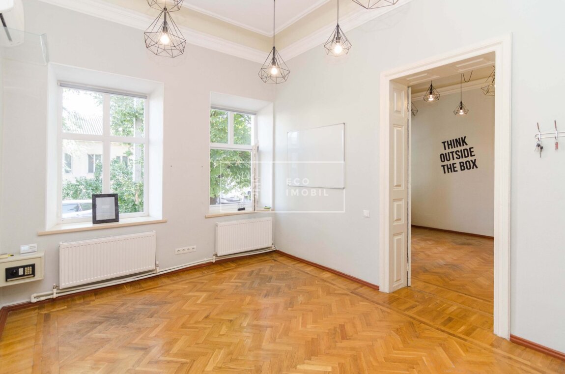 Se oferă spre închiriere oficiu în Ultra Centru al capitalei, pe str. Eminescu, cu o suprafață de 115 m.p. Caracteristici: Suprafață totală 115 m.p Clădire separată Tavane înalte 4 birouri/cabinete Bucătărie instalată Curte proprie Aer condiționat Încălzire autonomă Parchet Spațiu luminos Сдается в аренду офис в Ультра Центре столицы, на улице Еминеску, общей площадью 115 кв.м. Характеристики: Общая площадь: 115 кв.м Отдельно стоящее здание Высокие потолки 4 кабинета Оборудованная кухня Собственный двор Кондиционер Автономное отопление Паркет Светлое помещение