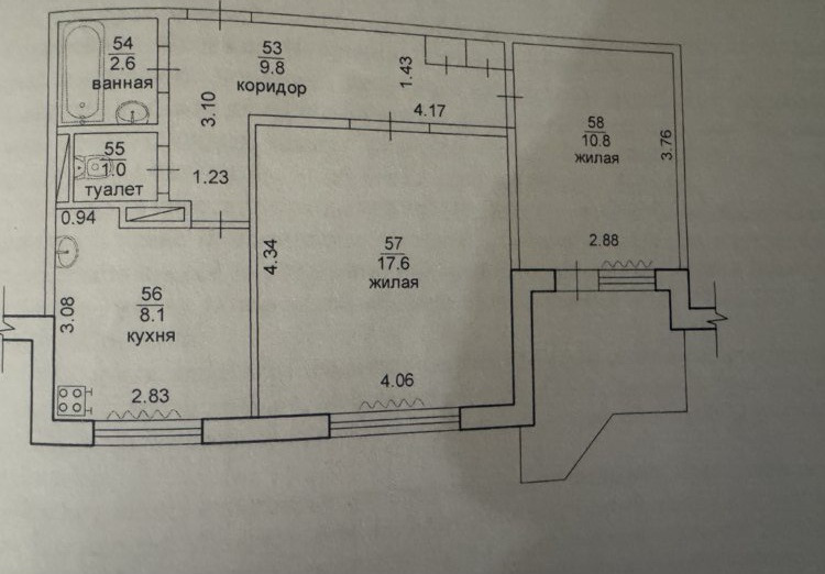 Общ площадь- 52 кв. м, кухня- 8 кв. м. Середина дома. 143 серия. Комнаты и санузел раздельные.