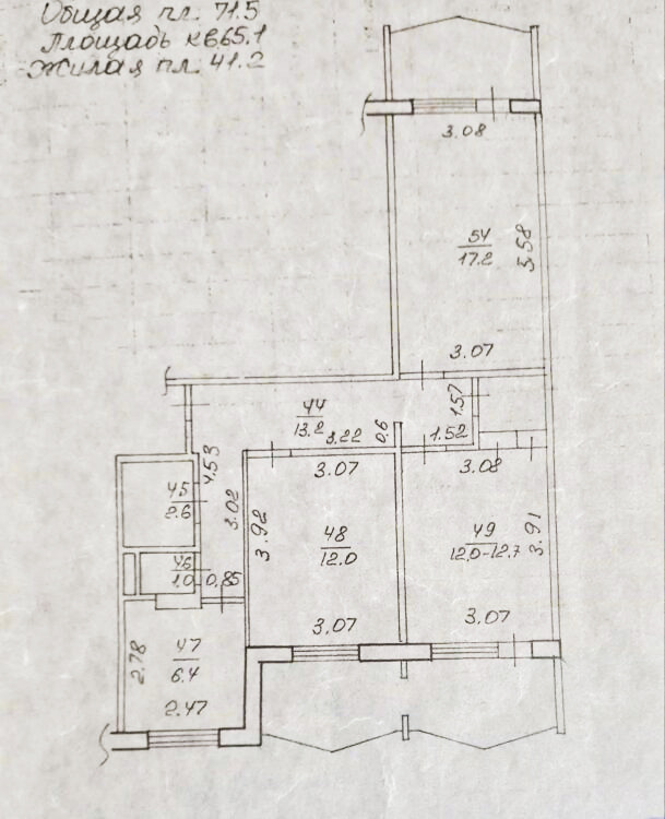 3-х комнатная квартира на 7-м этаже в жилом состоянии.