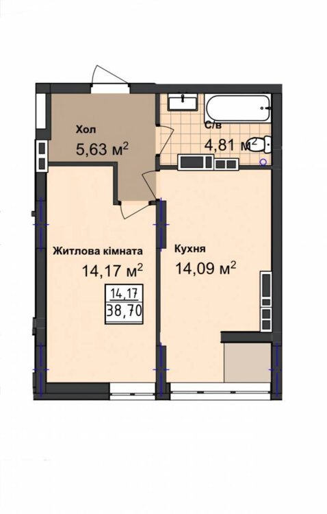 Suprafaţa totală38.7 m²