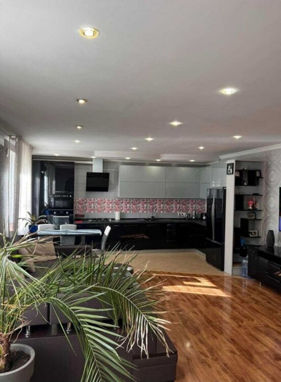 Статус - квартира на земле.Общая площадь 160 кв.м.Земли примерно 50 кв. м.На первом этаже кухня-студия 39 кв.м., прихожая и санузел с теплым полом, с душевой кабинкой и стиральной машиной. На втором этаже две уютные спальни,санузел и вместительная гардеробная. Остается мебель и техника.Отопление и горячая вода обеспечивается двухконтурным котлом. Установлен стабилизатор напряжения на весь дом.Городская канализация. Кондиционеры. Сигнализация. Видеонаблюдение. Спутниковое тв. Оптоволоконный интернет.Квартира выведена в единицу. Покупателю в подарок достанется металлический гараж и небольшой сарайчик. ID 7793