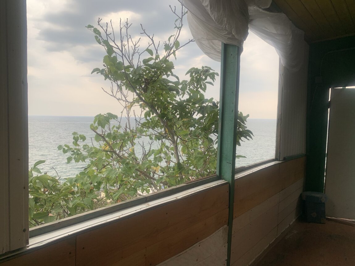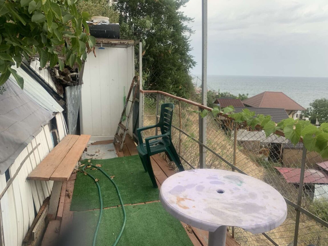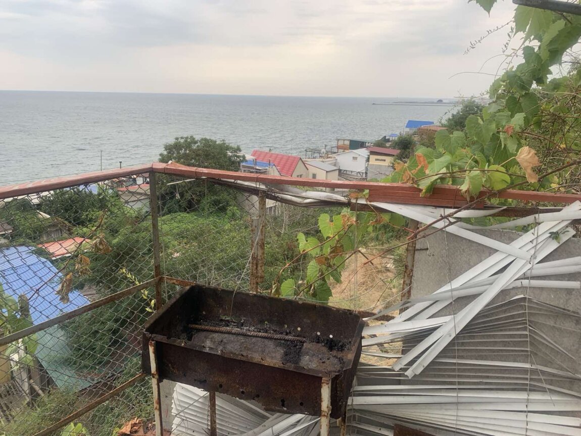Двухэтажный дом-дача. Панорамный вид моря. Жилое состояние. Первый этаж кухня-столовая, второй этаж две спальни. Две террасы. Свободной земли нет. Есть охраняемая парковка. ID 8158