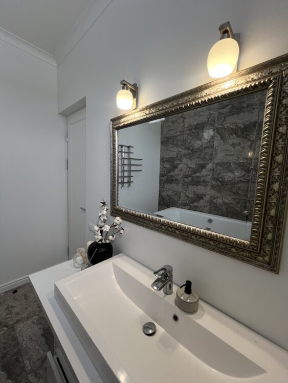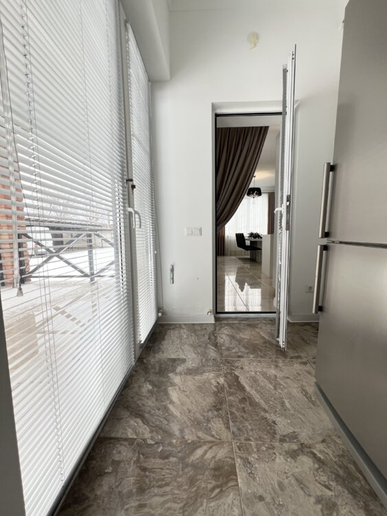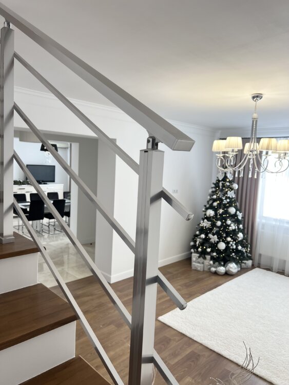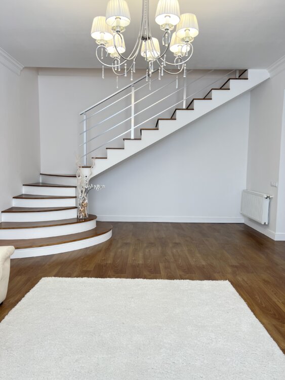 Отделка: Добротная бетонная лестница, стены под покраску, белые двери из крашеного МДФ «Avantaj» Установлены теплые полы. Вся мебель МДФ +ДСП egger.