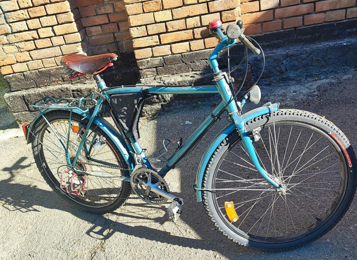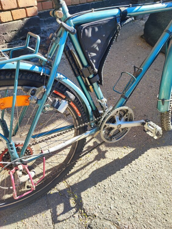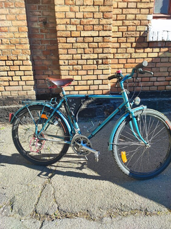 состояние отличное с наполнением в виде: насос, замок, звонок, багажник, анти ударная скоба на коретку, автомный свет, сумка. Колёса: 26, рама: M.