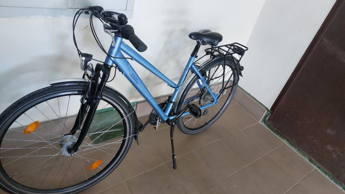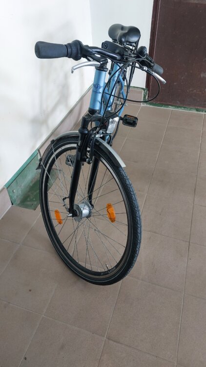 Привёз с Германии. Передний амортизатор, фары передние, задние лед, светящийся от динамо-втулки. В отличном состоянии. комплектация Schimano. Рублями 3500,долларами 200.