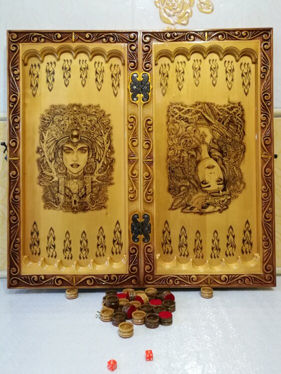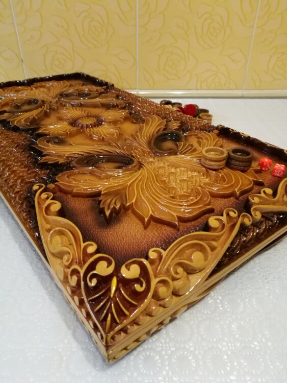 Нарды ручная резьба вырезанные со всех сторон и боков также и внутри нард на бортах есть резьба цветные био лаки нарды облагорожены чеканкой по дереву размер нард 60 на 60см фишки ясень дуб кубики кость. Поиграл и повесил на стенку украсит любой интерьер и создаст уютную обстановку а не будут пылиться в углу. Широкий выбор в наличии выбираите. Пишите звоните телеграм ватцап ваибер и мы вам поможем выбрать эксклюзивные нарды ручной резьбы а не дешевую поделку вырезанные на станке выдающую за ручную резьбу!