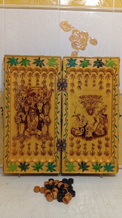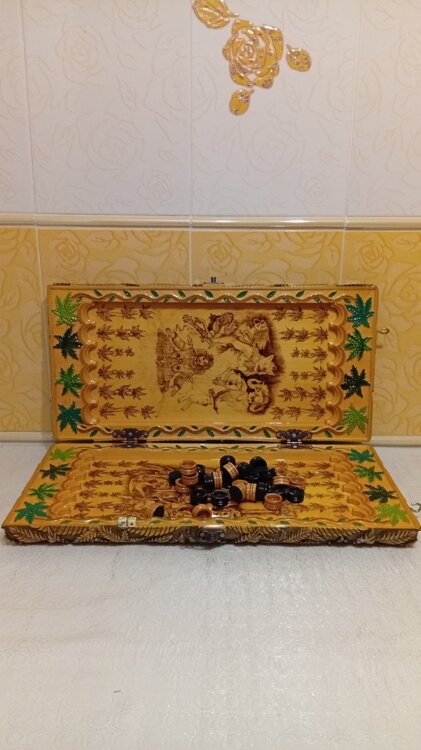 Нарды ручная резьба вырезанные со всех сторон и боков также и внутри нард на бортах есть резьба цветные био лаки нарды облагорожены чеканкой по дереву размер нард 60 на 60см фишки ясень дуб кубики кость. Поиграл и повесил на стенку украсит любой интерьер и создаст уютную обстановку а не будут пылиться в углу Широкий выбор в наличии выбираете. Пишите звоните телеграм ватцап ваибер и мы вам поможем выбрать эксклюзивные нарды ручной резьбы а не дешёвую поделку вырезанные на станке выдающую за ручную резьбу!