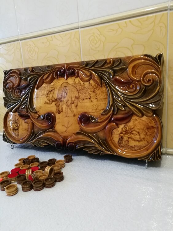 Нарды ручная резьба вырезанные со всех сторон и боков также и внутри нард на бортах есть резьба цветные био лаки нарды облагорожены чеканкой по дереву размер нард 60 на 60см фишки ясень кубики кость. Поиграл и повесил на стенку украсит любой интерьер и создаст уютную обстановку а не будут пылиться в углу Широкий выбор в наличии выбираете. Пишите звоните телеграм ватцап ваибер и мы вам поможем выбрать эксклюзивные нарды ручной резьбы а не дешёвую поделку вырезанные на станке выдающую за ручную резьбу!