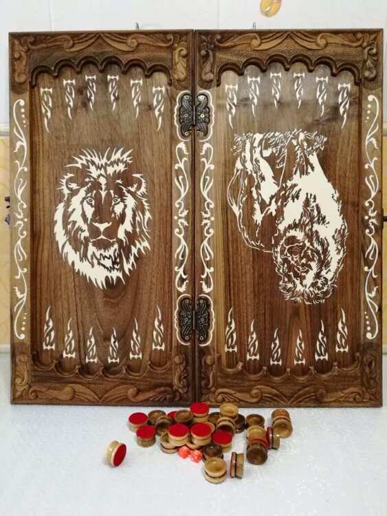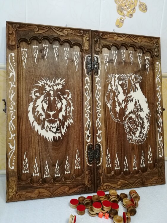 Подарок для очень дорогого Человека. Нарды ореховые не боятся воды и солнца технология изготовления позволяет использовать всепогодно нарды ручная резьба вырезанные из Чёрново ореха со всех сторон и боков также и внутри нард на бортах есть резьба всё белое аппликация из кости нарды пропитаны воском и канифолем по стариной технологии Вечные нарды облагорожены чеканкой по дереву размер нард 60 на 60см фишки Двухцветный орех кубики кость. Поиграл и повесил на стенку украсит любой интерьер и создаст уютную обстановку а не будут пылиться в углу. Широкий выбор в наличии выбирайте. Пишите звоните телеграм ватцап ваибер и мы вам поможем выбрать эксклюзивные нарды ручной резьбы а не дешевую поделку вырезанные на станке выдающую за ручную резьбу!