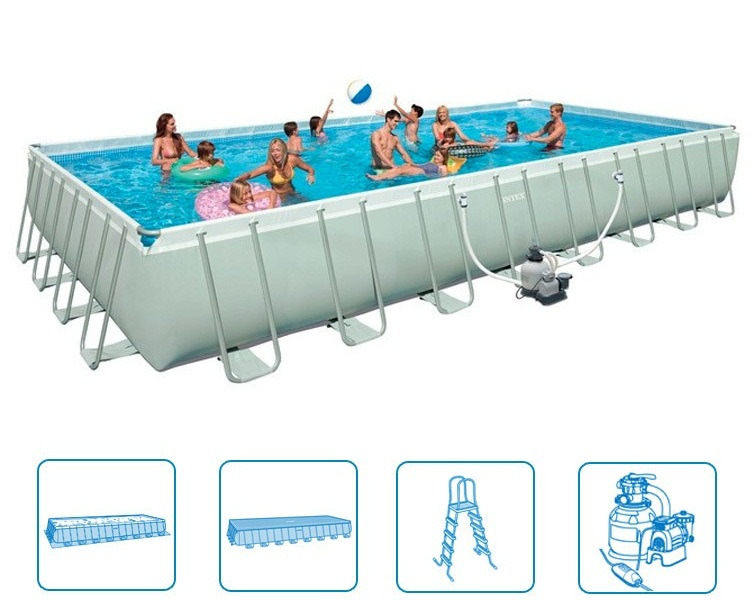 Большой прямоугольный каркасный бассейн Intex! Размер бассейна позволит с комфортом отдыхать всей Вашей семье и Вашим близким.